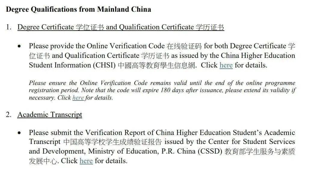 必须提供教育部学信网(CHSI)出具的在线验证码,验证报告需包含中、英文版本,且有效期需覆盖入学审核期。由于验证码自出具之日起180天失效,申请者需及时检查并延长有效期,避免因验证码过期影响审核。