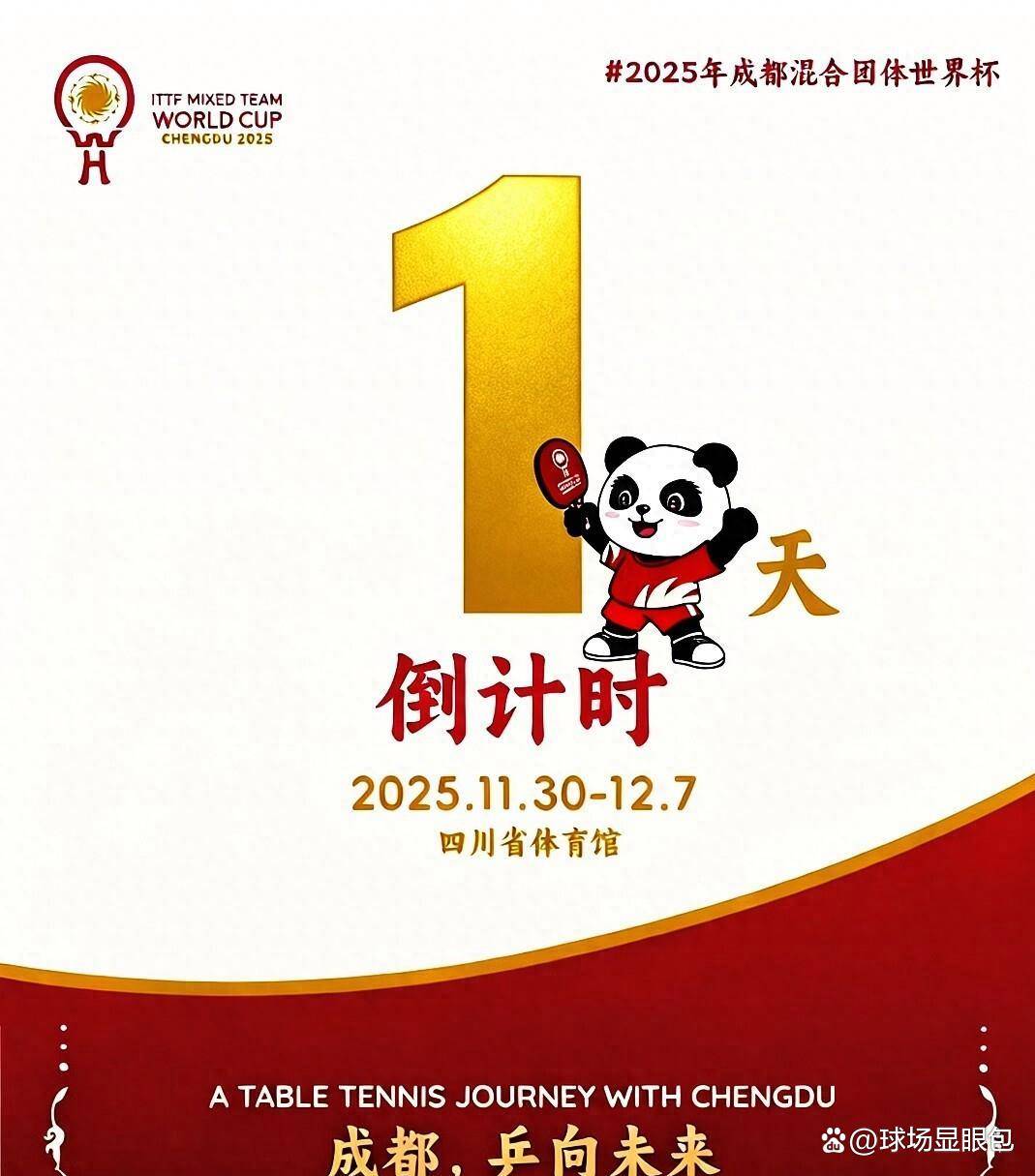 训练馆墙上的倒计时牌显示距离成都混团世界杯开赛还有1天。 王楚钦在抽签仪式结束后,又回到训练馆加练了40分钟发球。 场馆工作人员透露,最近三天国乒的训练时长都超过了6小时,教练组带来的运动饮料消耗量比平时增加了三倍。