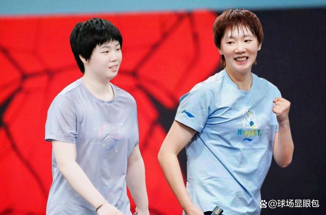 女双训练场上,王曼昱/蒯曼的“曼曼组合”展现出世界第一的统治力。 她们与林诗栋/梁靖崑的“栋梁组合”进行了跨性别对抗训练。 蒯曼的反手拧拉质量明显提升,而王曼昱的中远台防守覆盖了将近三分之二的球台。 这对组合目前积分达到8200分,比排名第二的日本组合木原美悠/长崎美柚高出近2000分。 训练间隙,蒯曼一直在用电子设备记录数据,王曼昱则反复观看刚才某个回合的慢动作回放。
